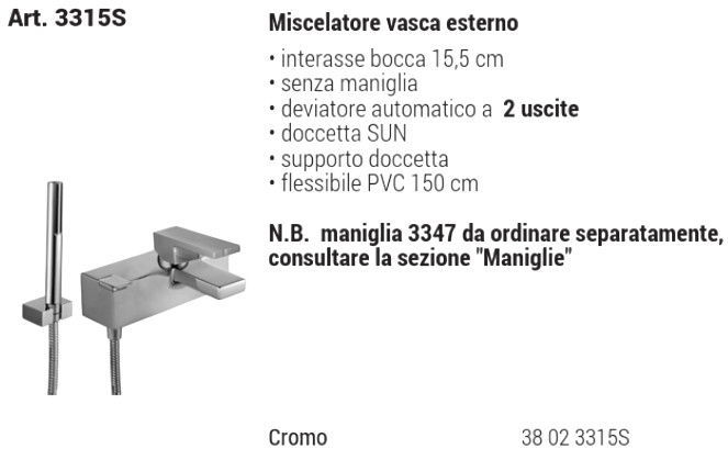 • interasse bocca 15,5 cm • SENZA MANIGLIA • deviatore automatico a 2 uscite • doccetta SUN • supporto doccetta • flessibile PVC 150 cm